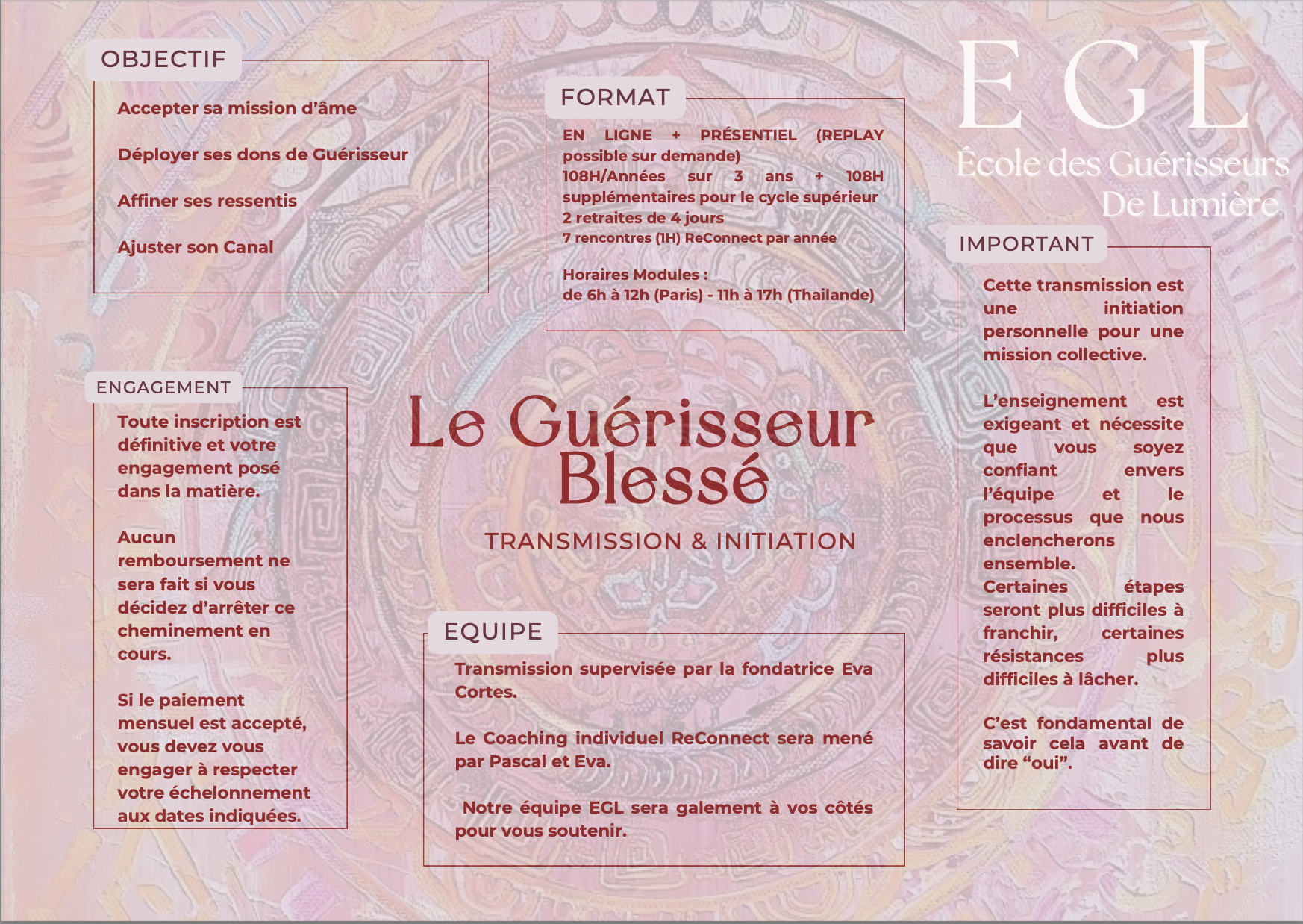 Il s’agit d’entrer dans un enseignement ancestral et initiatique, où des valeurs telles que la Foi, la Confiance et la Transparence serviront de socle pour avancer sur ce chemin.